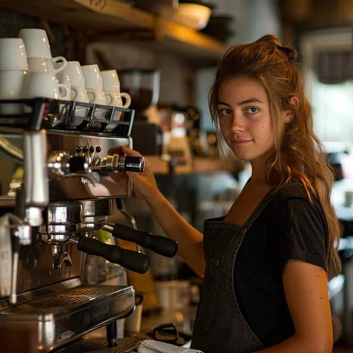 Making coffee and other drinks as well as helping with taking customer orders, serving tables and cleaning.